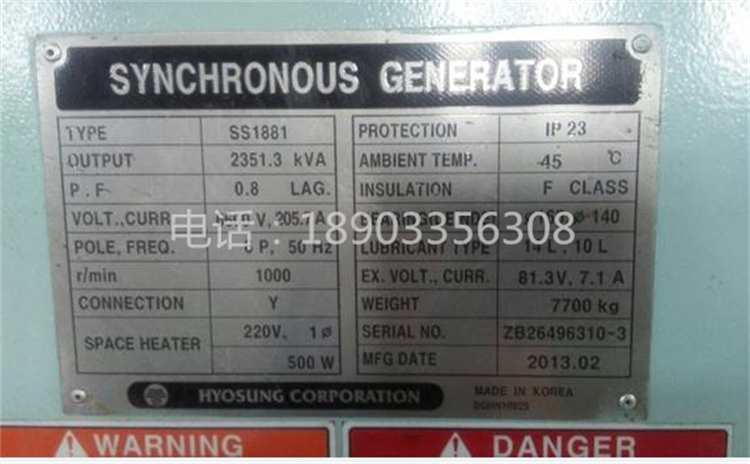 1980KW x 1000 RPM, 6600V,50HZ |